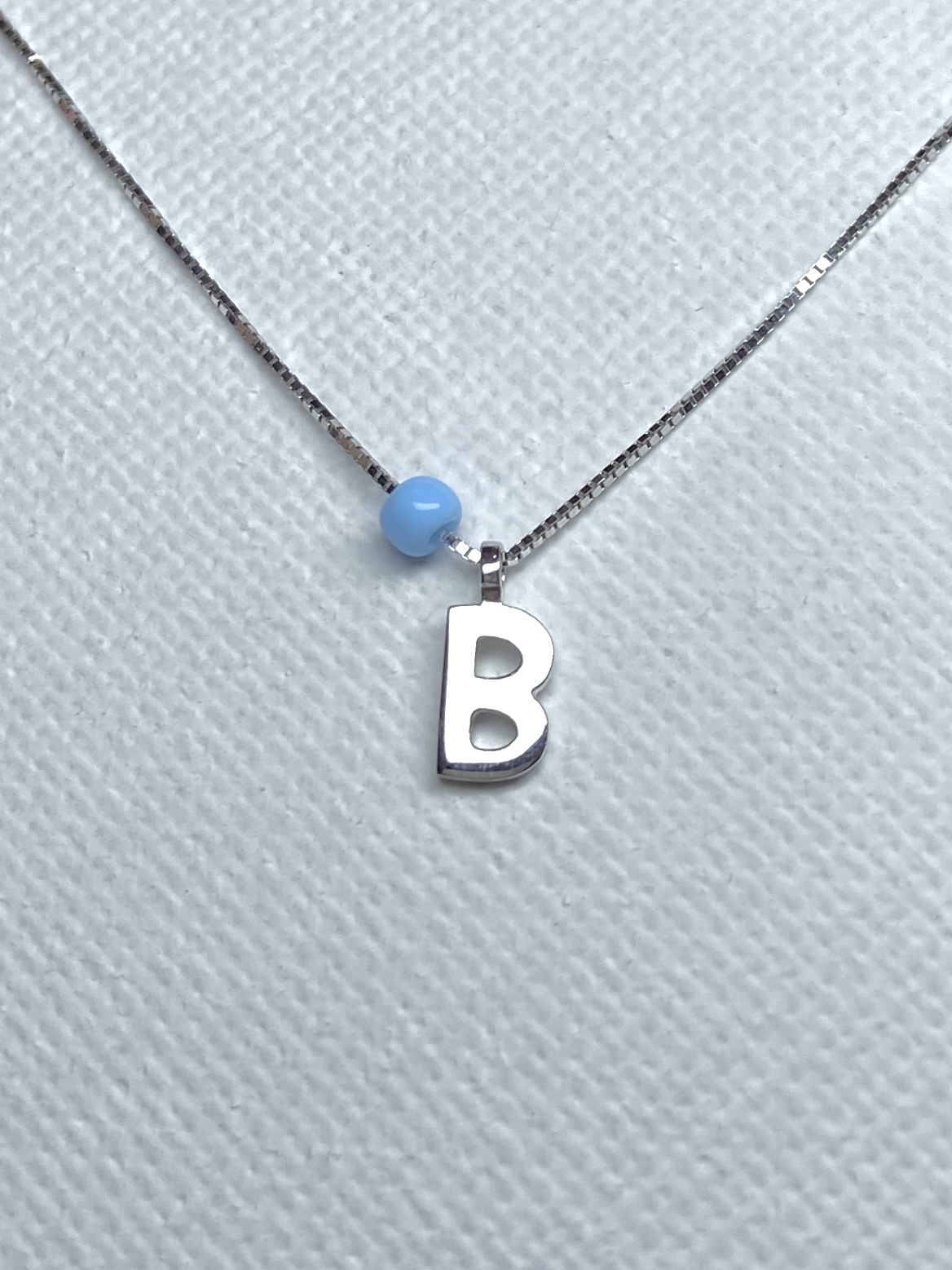 18K WHITE GOLD NECKLACE ANY LETTER WITH TURQUOISE STONE