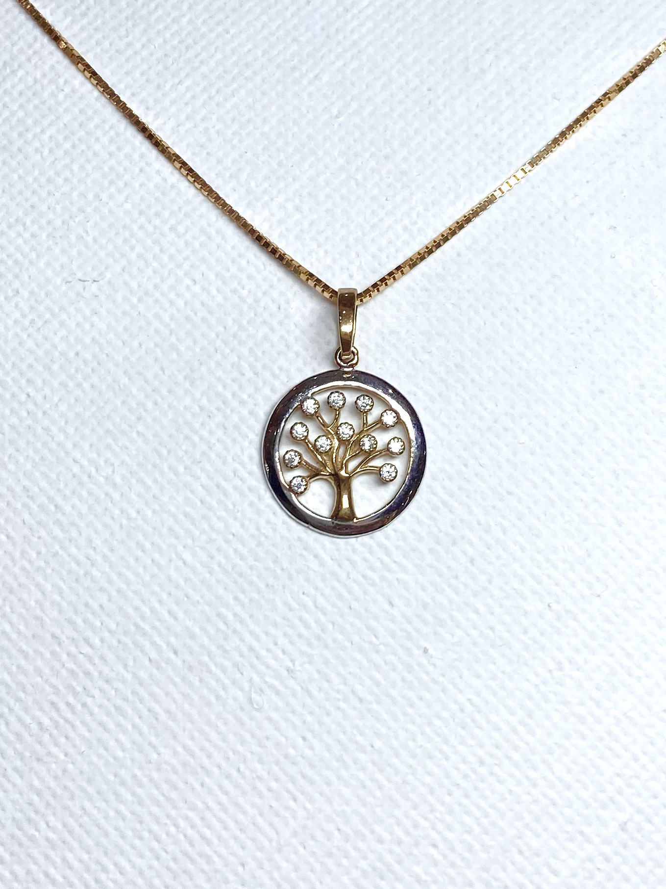 9K GOLD PENDANT TREE OF LIFE WITH ZIRCONIA STONES